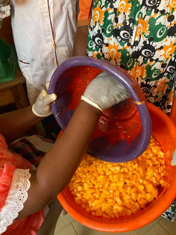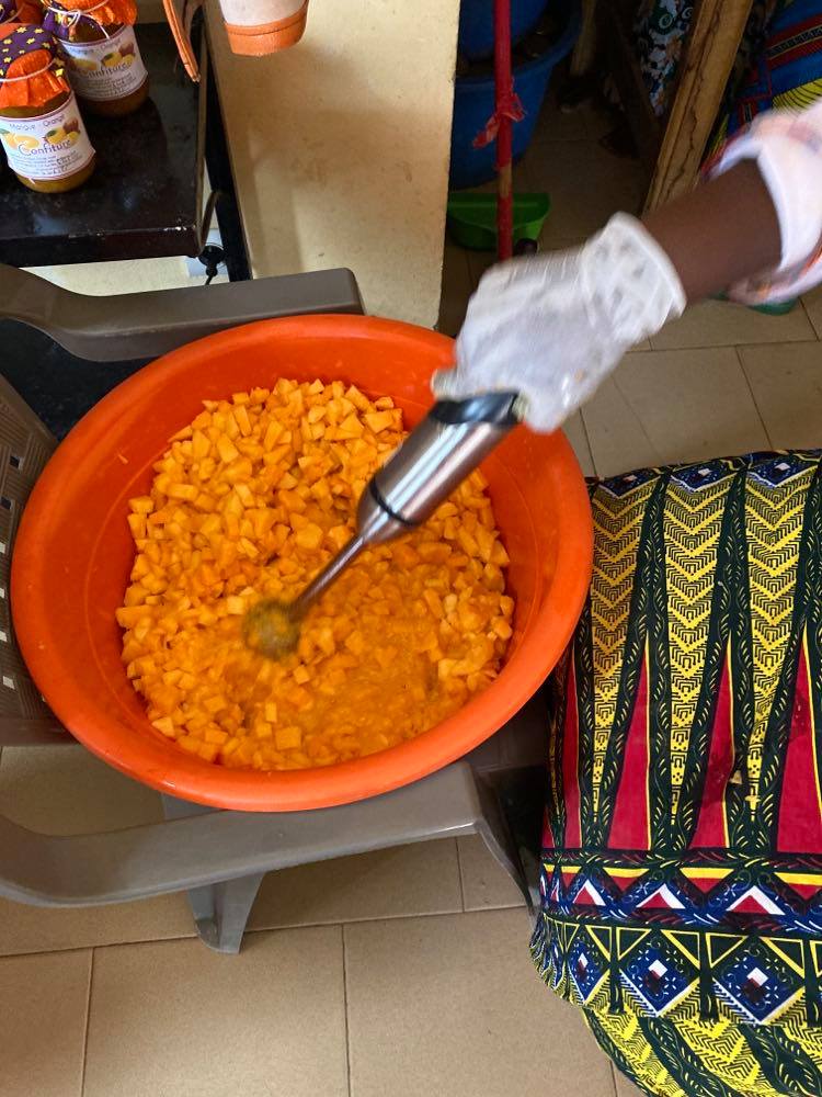 SOKHNA MAI est une association de femmes sénégalaises de Nianing qui transforment des fruits en confiture. Dans une prochaine phase, ils prévoient d’étendre leur entreprise avec la transformation de légumes et de céréales. Pour cette mise à l’échelle, ils ont besoin de zones de production supplémentaires. La construction est réalisée de manière durable et respectueuse du climat en utilisant BTC = brique de terre comprimée.